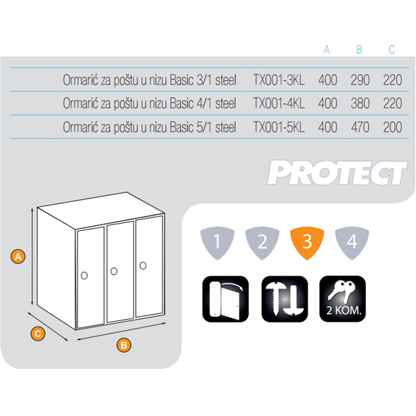Ormarić za poštu u nizu - BASIC 5/1 steel