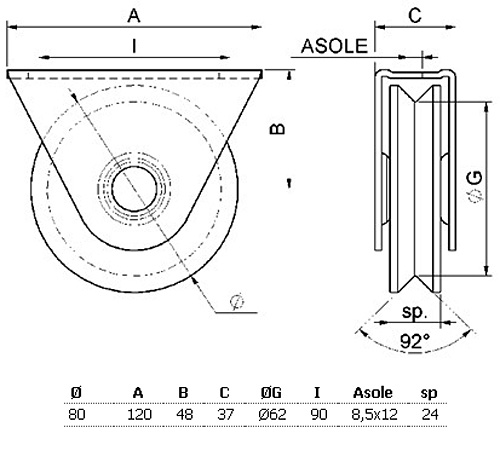 Kotač za klizna vrata "V" profil sa nosačem