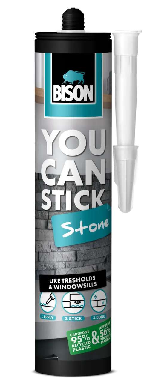 You Can Stick: Kamen je ljepilo za montažu kamena vrhunske kvalitete, jednostavno za korištenje, prilagođeno materijalima, temeljeno na polimernoj tehnologiji i bez otapala. Može se koristiti za lijepljenje kamena, mramora, granita, travertina, opeke, vapnenca i škriljevca – da navedemo samo neke – na brojne površine. Nanesi, Zalijepi, Gotovo.