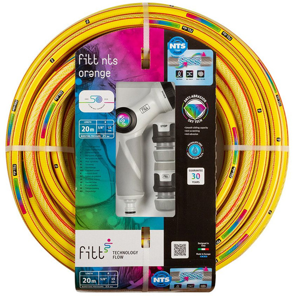 - FITT NTS ORANGE je inovativno crijevo s nizom ekskluzivnih karakteristika: jedinstvena i originalna tehnologija NTS za visoki stupanj rastezljivosti bez petlja i uvijanja