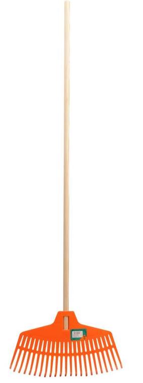 Lagane lepezaste grablje izrađene od izdržljive plastike s ručkom od borovog drveta.