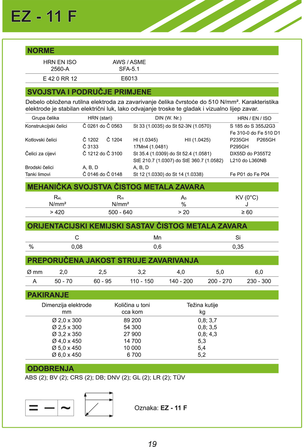 Karakteristika elektrode je stabilan električni luk, lako odvajanje troske te gladak i vizualno lijep zavar.
